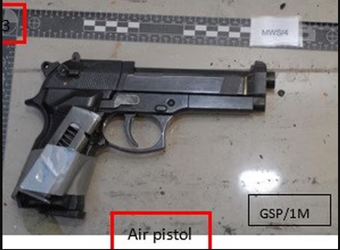 A police handout of an imitation handgun with an empty magazine taped to it that was found in Naweed Ali’s car. Photograph: West Midlands Police/PA