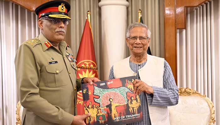 Chairman Joint Chiefs of Staff Committee (CJCSC) General Sahir Shamshad Mirza and Bangladesh’s Chief Adviser Muhammad Yunus have underscored the significance of strengthening bilateral defence and security cooperation, the Inter-Services Public Relations (ISPR) said on Monday.