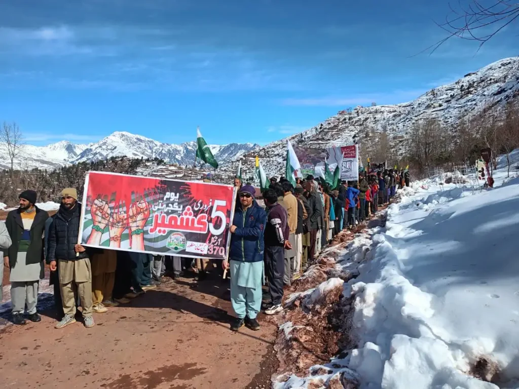 ?Kashmir Solidarity Day was observed with immense passion in the Kearni Mandhar and Neza Peer sectors, located directly on the Line of Control (LoC), where voices from the other side can be heard. Despite the harsh weather and “stormy” snow conditions, the local population turned out in significant numbers to honor the movement.
